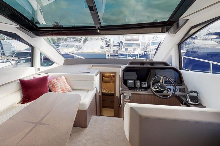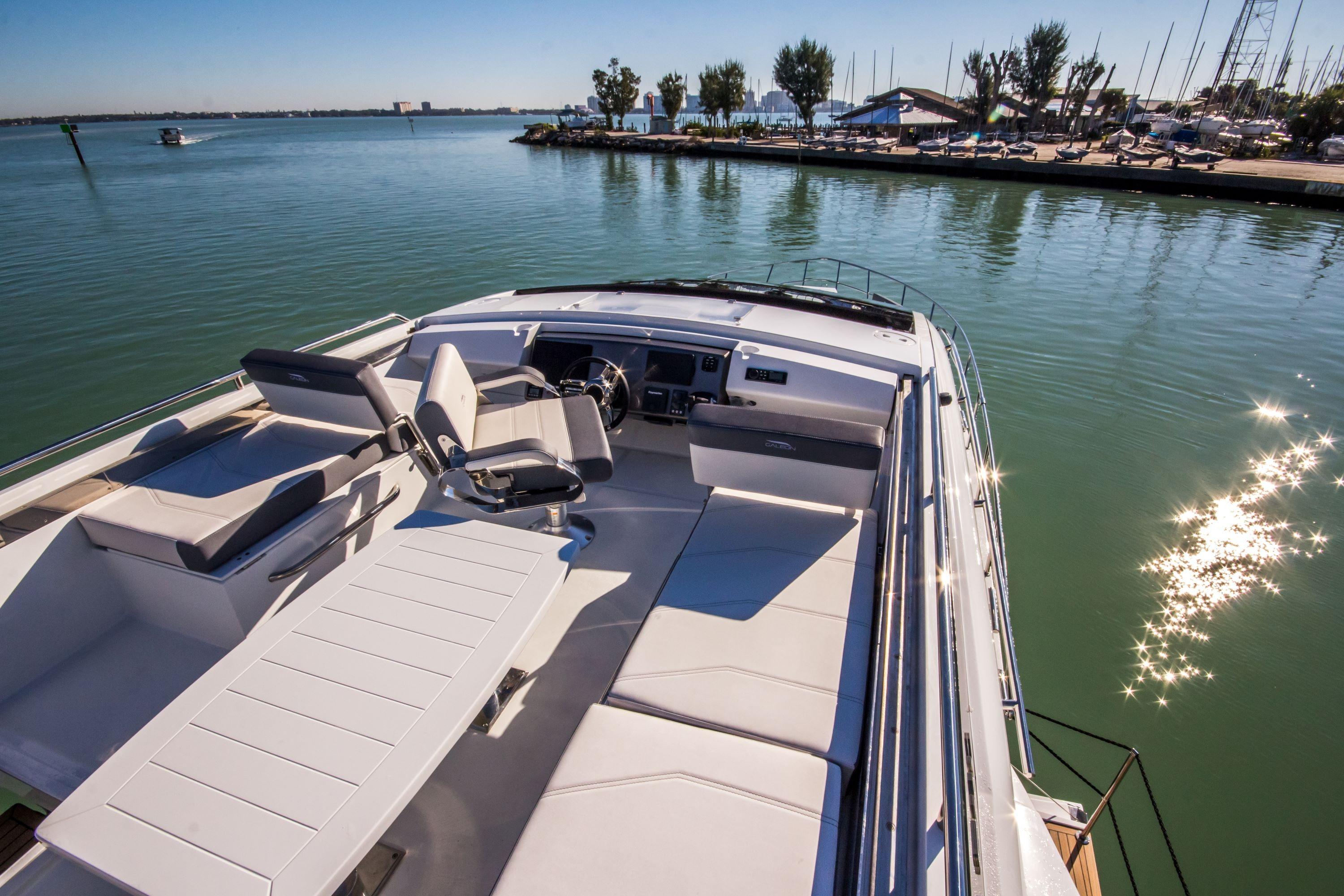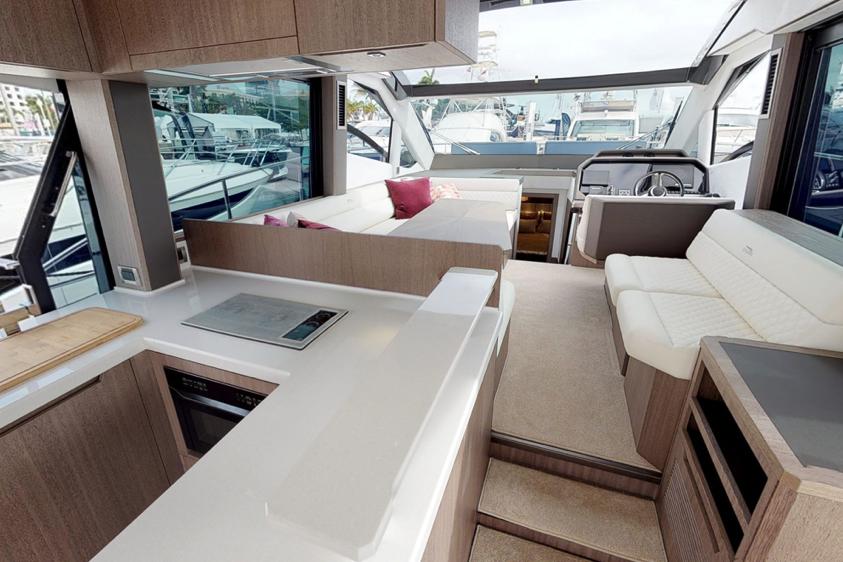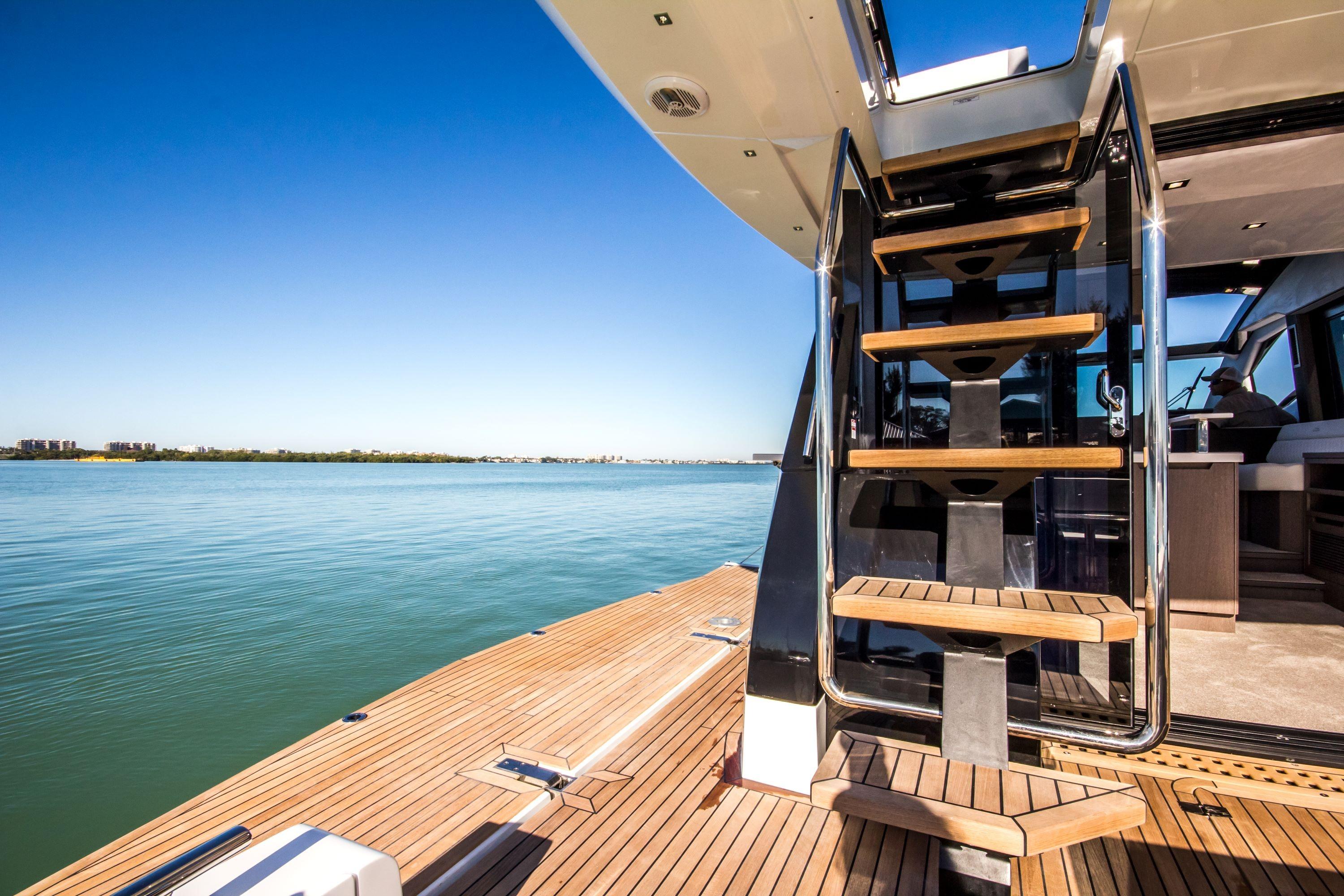 The Galeon 510 SKY builds on the already popular 500 FLY by offering the versatility of having both an express coupe and flybridge design in one groundbreaking package. The 510 SKY includes the popular Beach Mode and its expanding main deck, along with a stylish hidden flybridge. What’s more, the interior boasts a level of fit and finish that will impress anyone that steps aboard your yacht.
